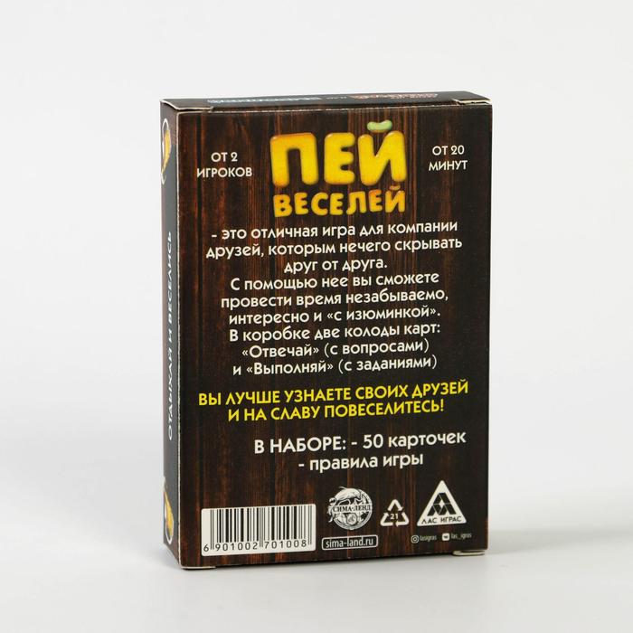 Купить игра для компании "пей веселей" 50 карт от 180 руб. с доставкой до пункта выдачи в Куйбышеве. Интернет магазин ДекаМаркет. Оплата при получении.